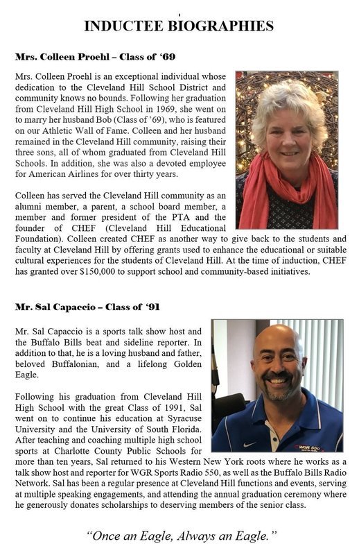 On Wednesday, June 7th, 2023, Collen Proehl and Sal Capaccio were the first inductees to the Cleveland Hill Schools Hall of Fame.